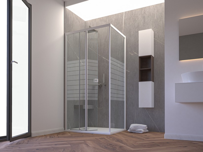 Sliding Shower Door Mirò H200 130x80cm Left Opening 6 mm Clear Glass Horizontal Stripes Matt White Profiles